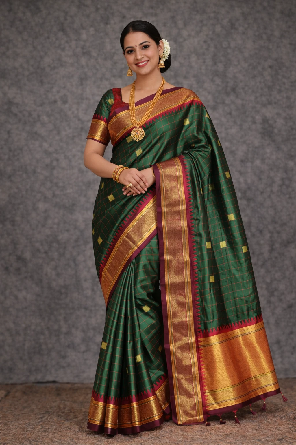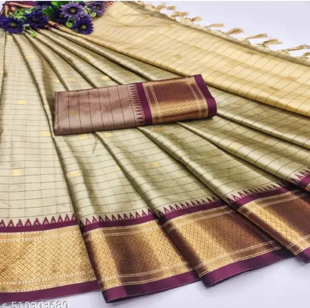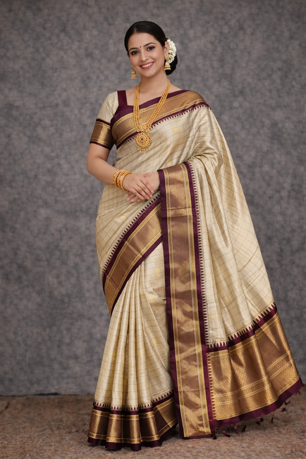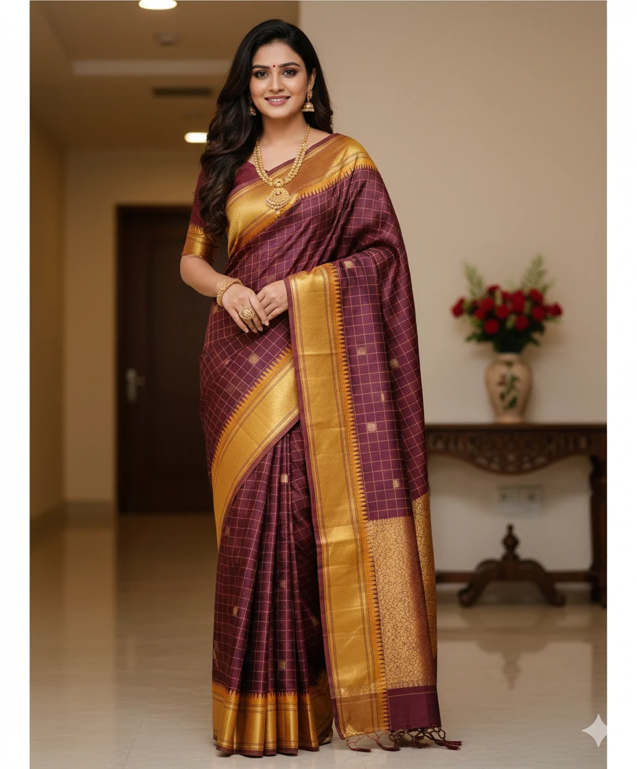 Traditional grid (kattam) designs that give a timeless and elegant South Indian look.