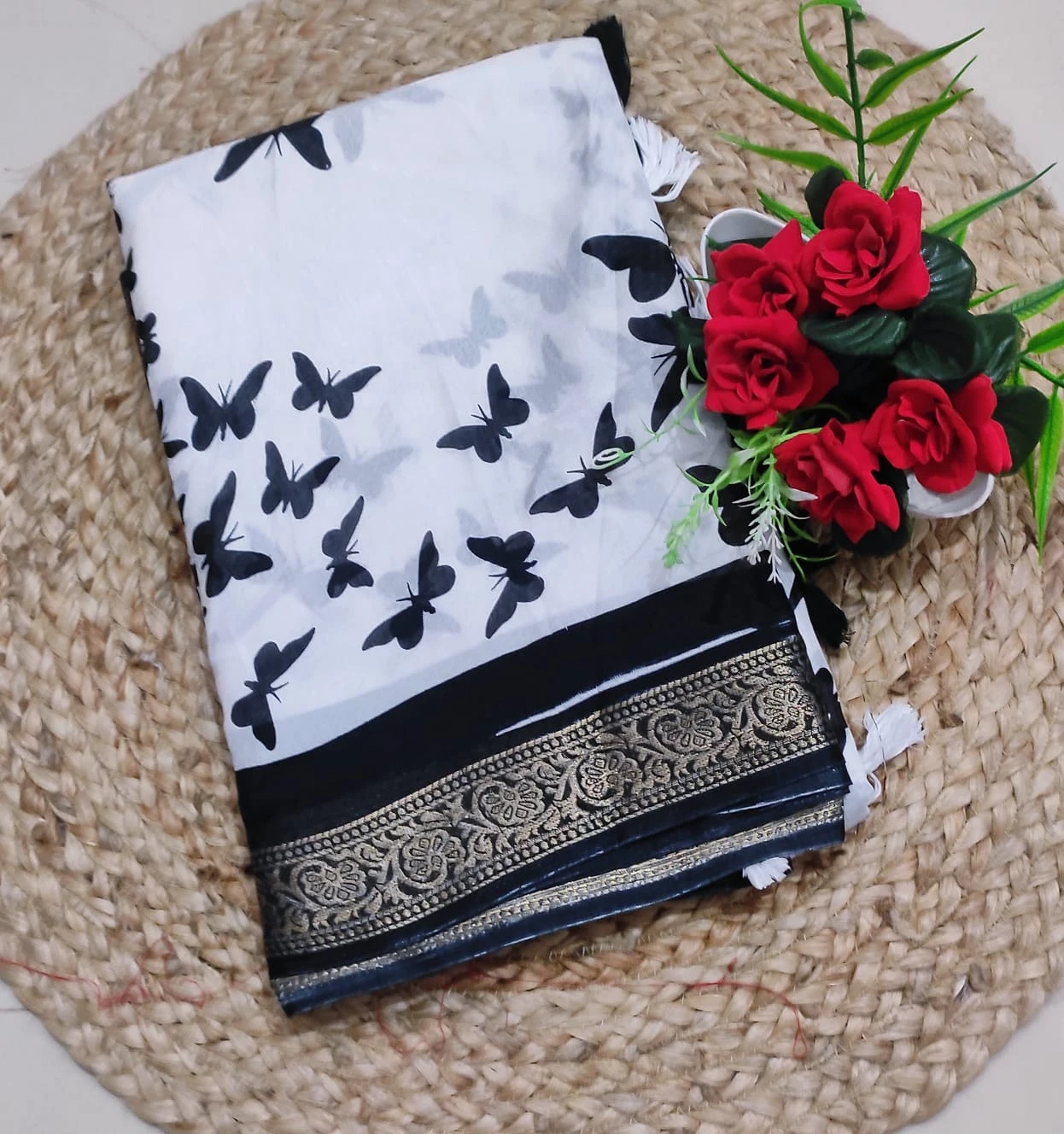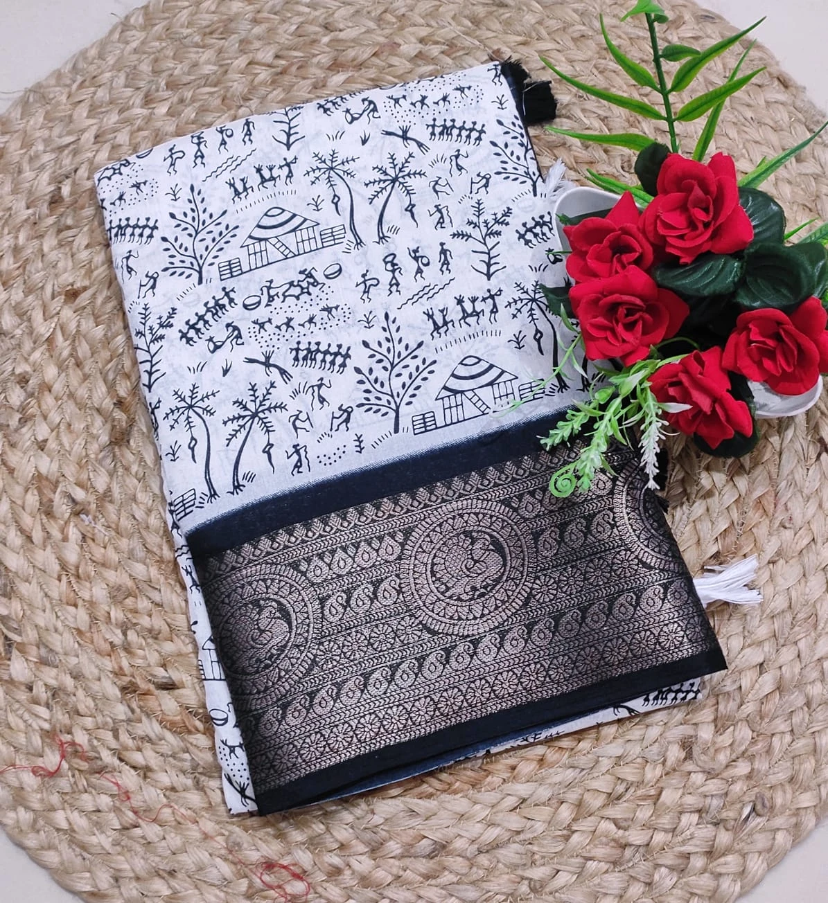 Rich Zari Borders – Designed with attractive zari borders that enhance the overall look of the saree.