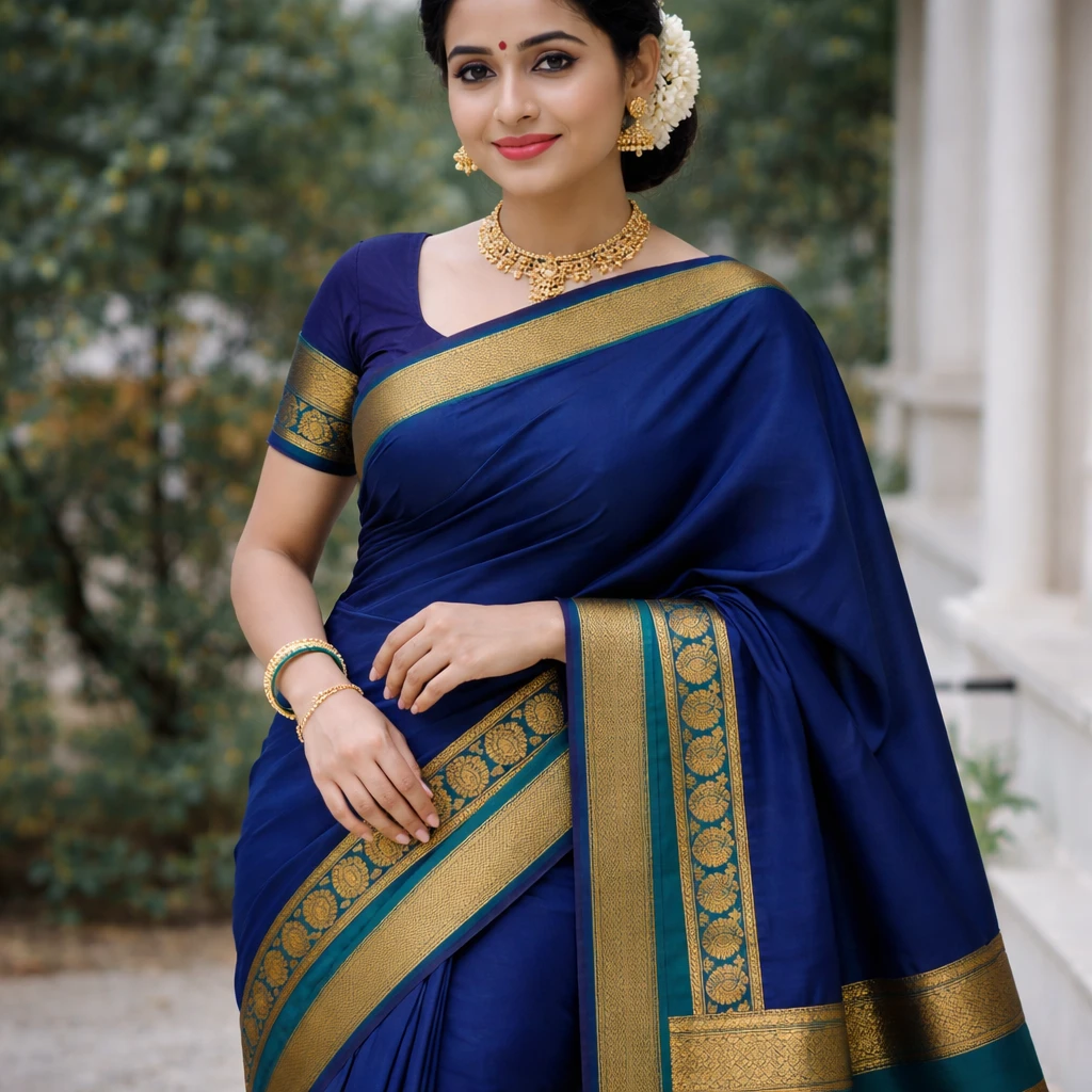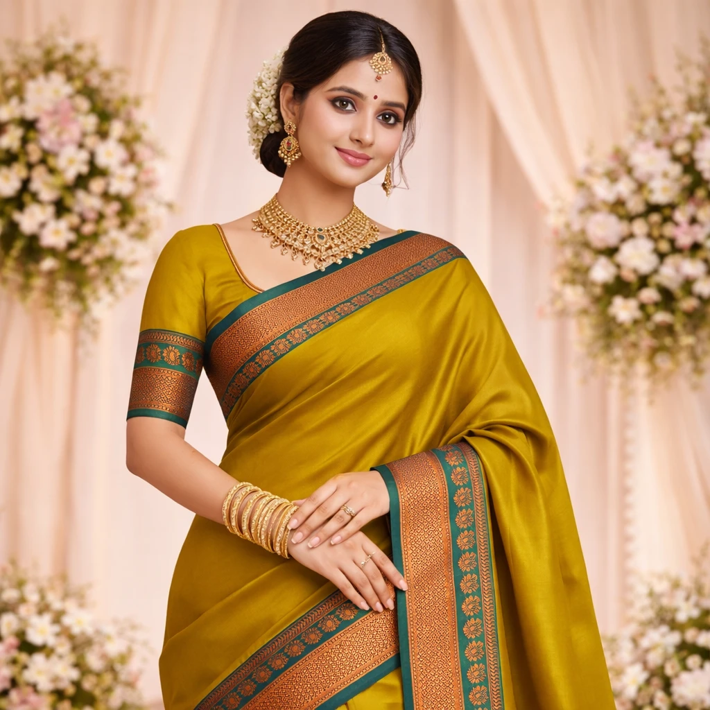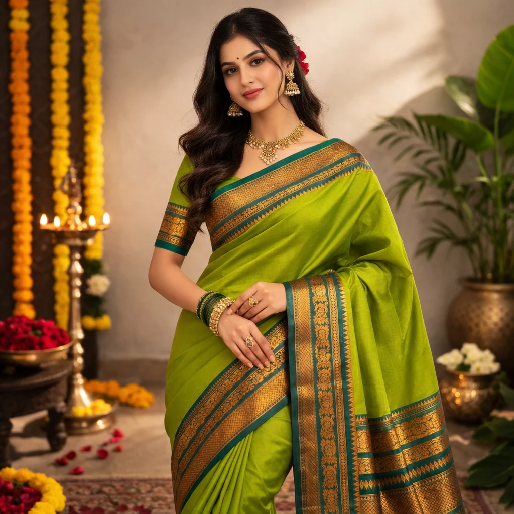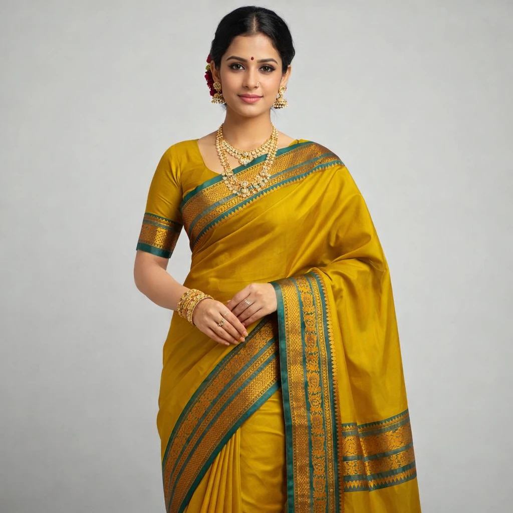 Beautifully woven zari border adds a grand and traditional wedding touch.