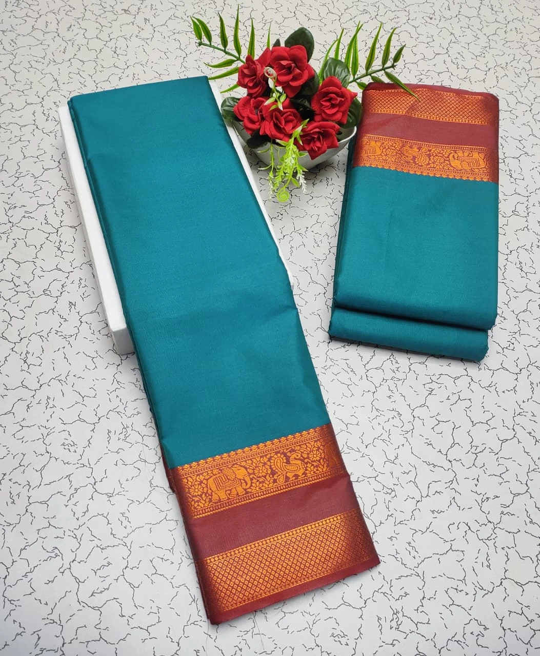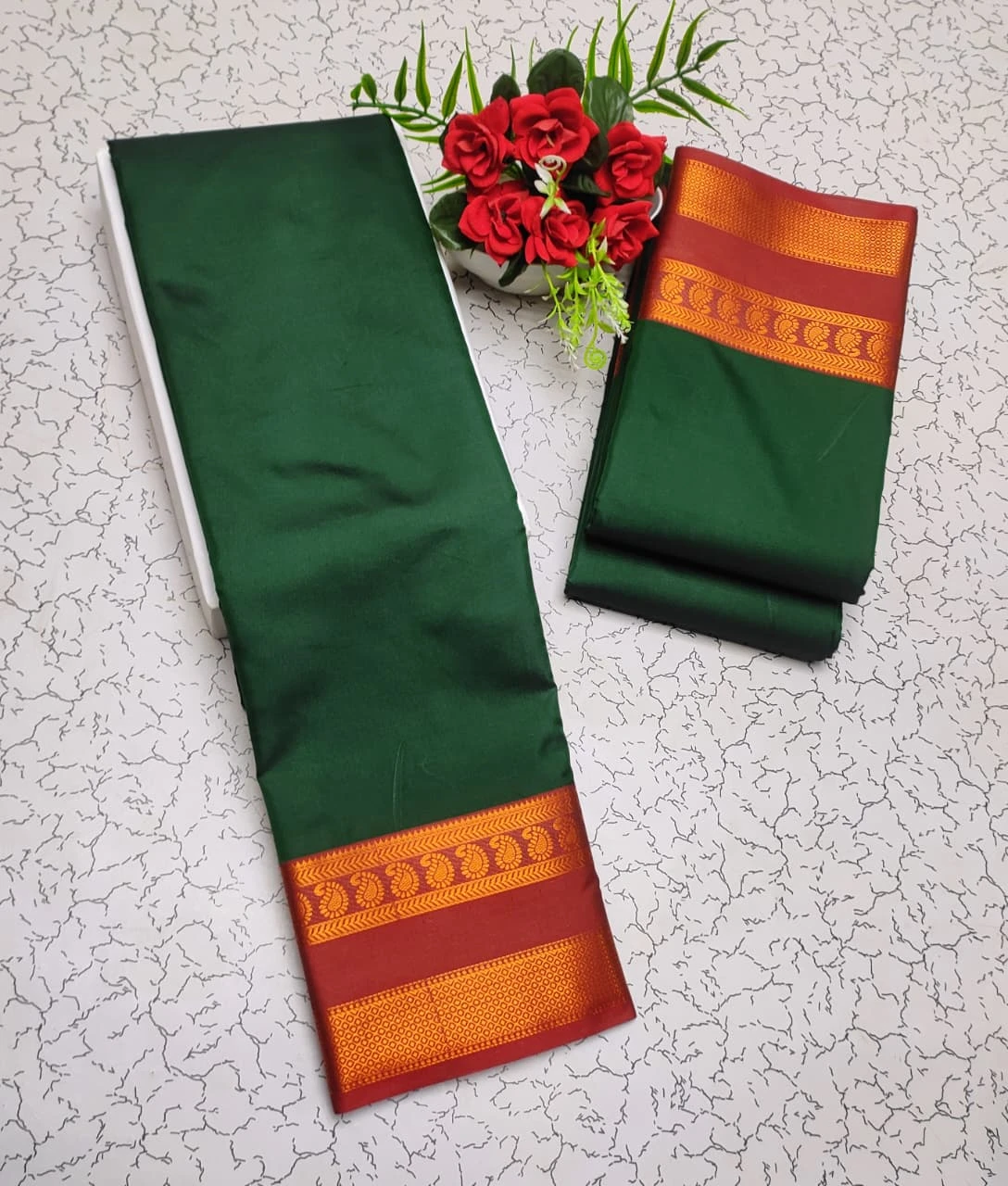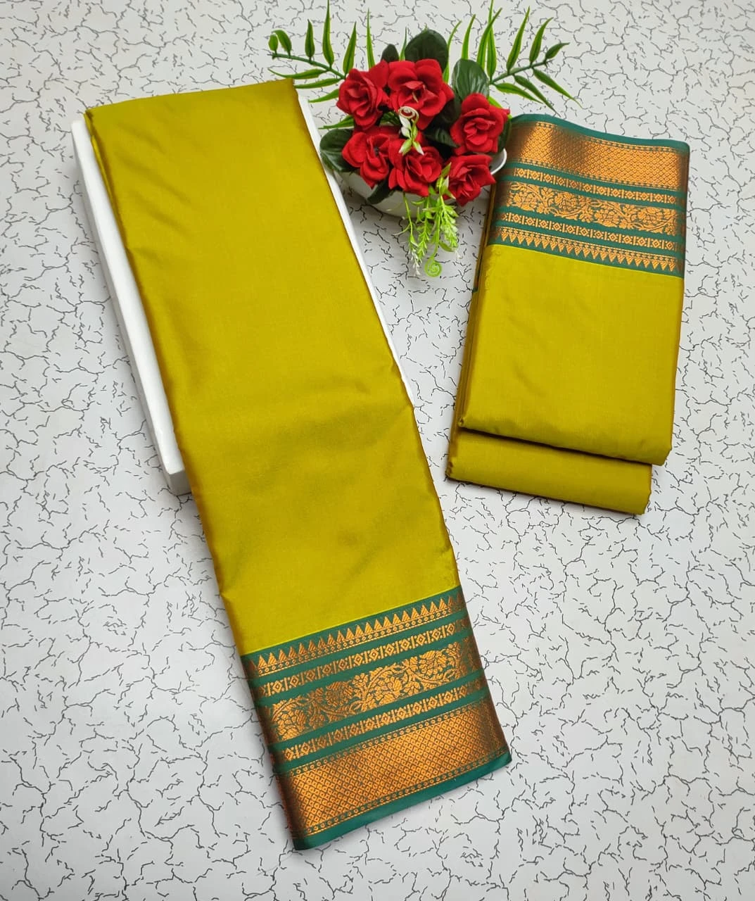 Beautifully woven zari border adds a grand and traditional wedding touch.
