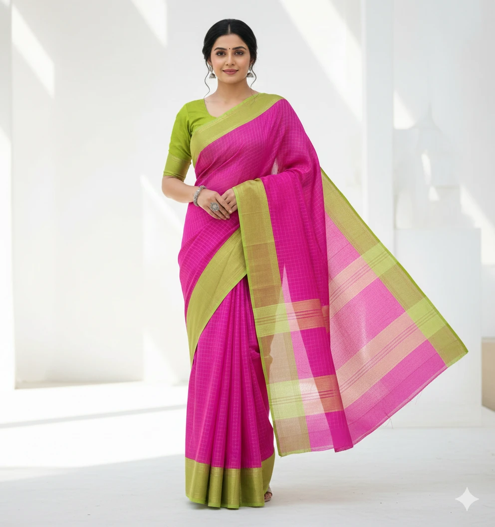 Elegant Borders & Rich Pallu – Beautifully woven borders and detailed pallu enhance the saree’s grandeur.