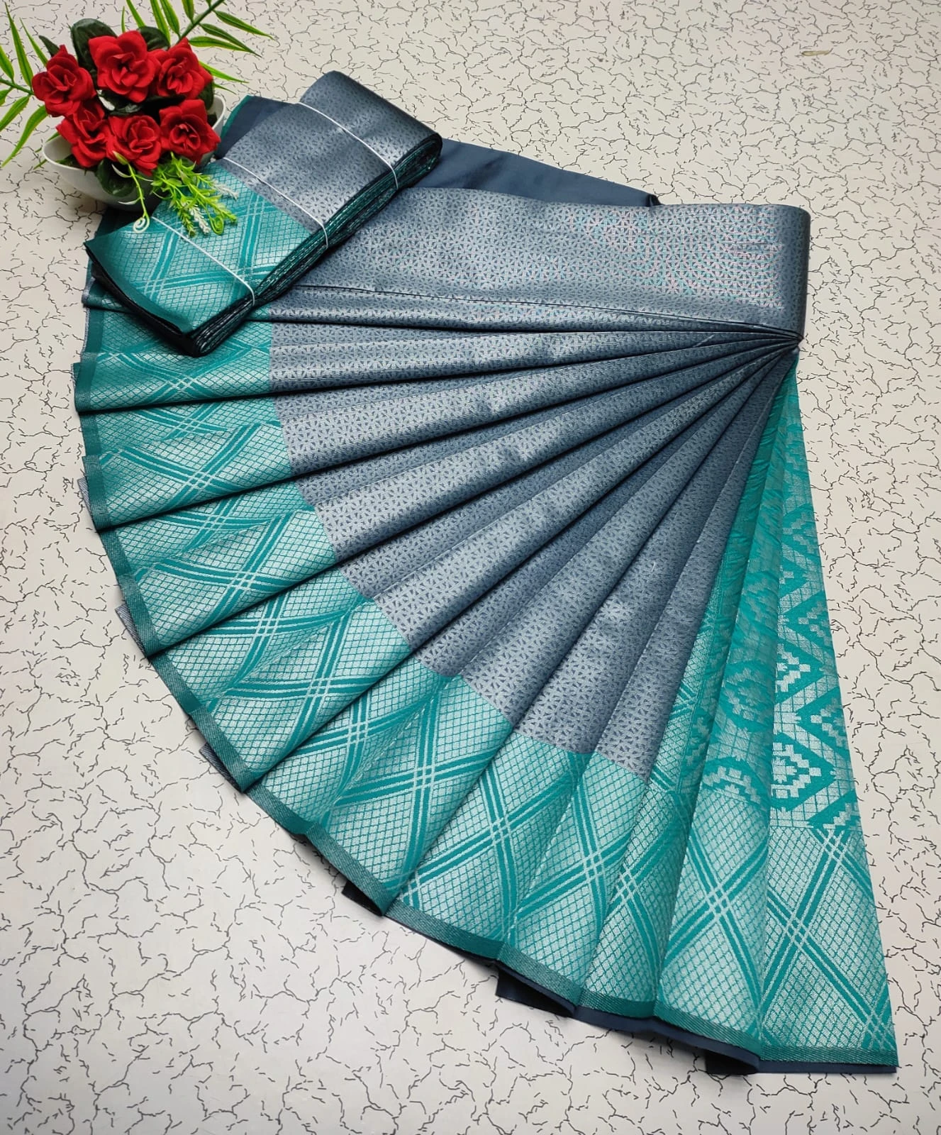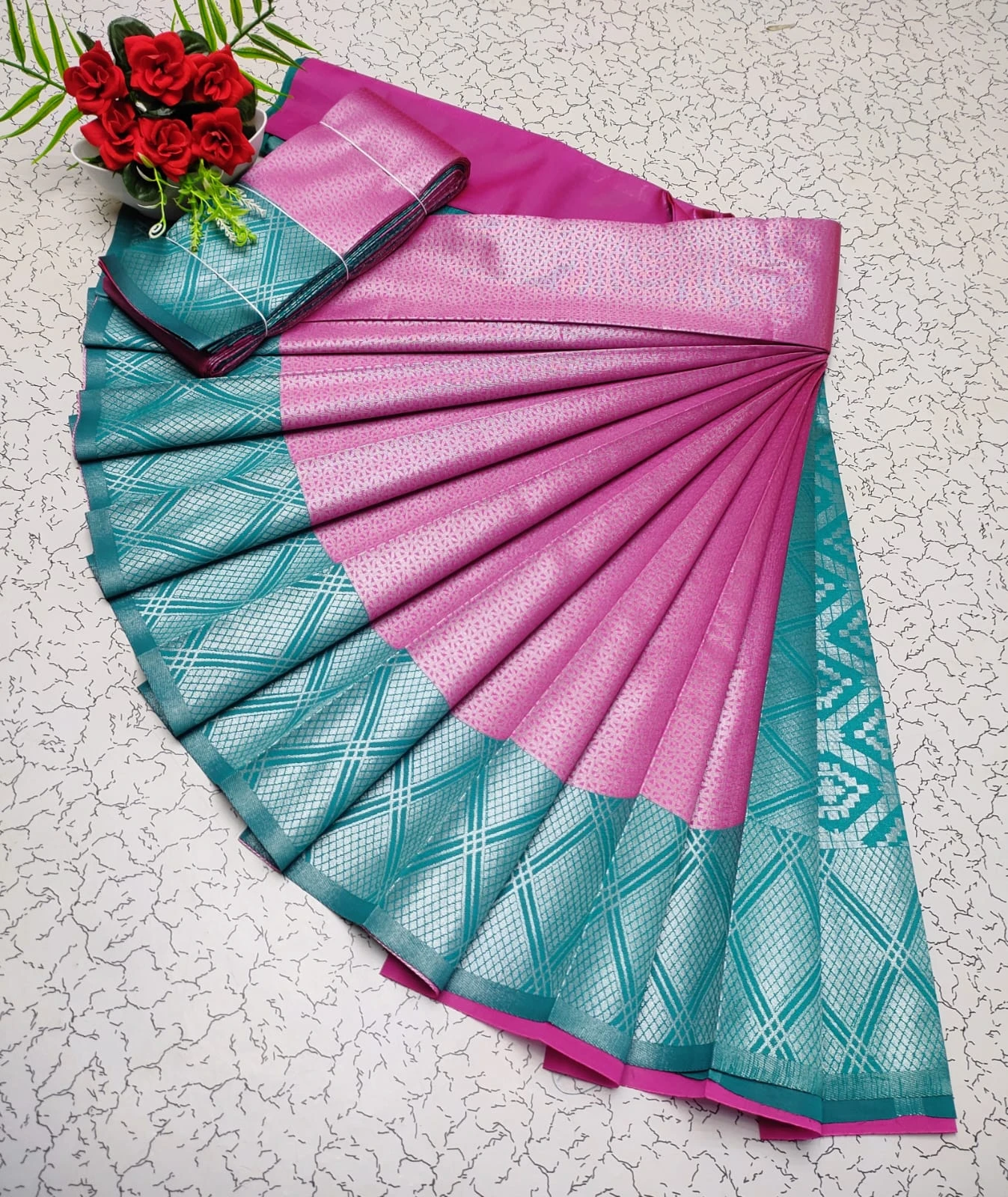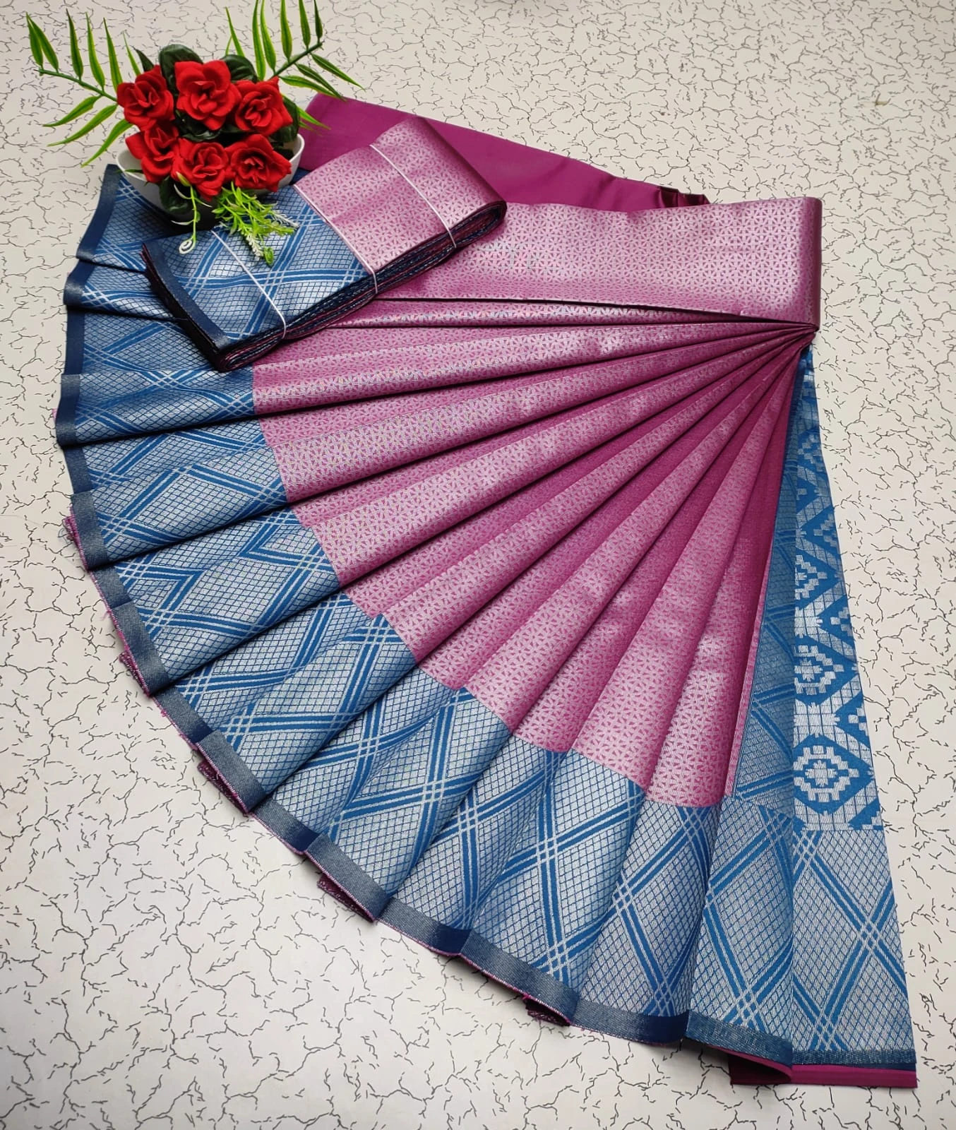 Matching Blouse Piece Included – Comes with a matching unstitched blouse piece for a complete outfit.