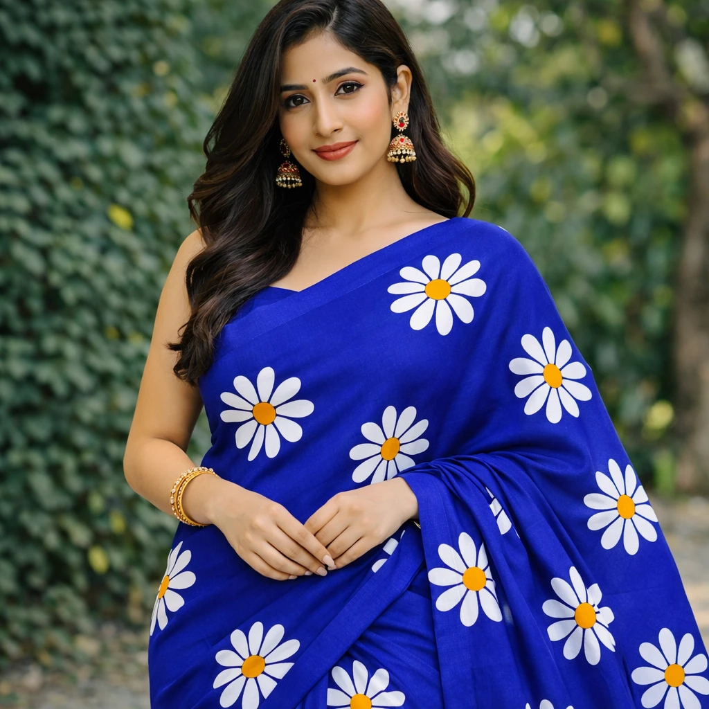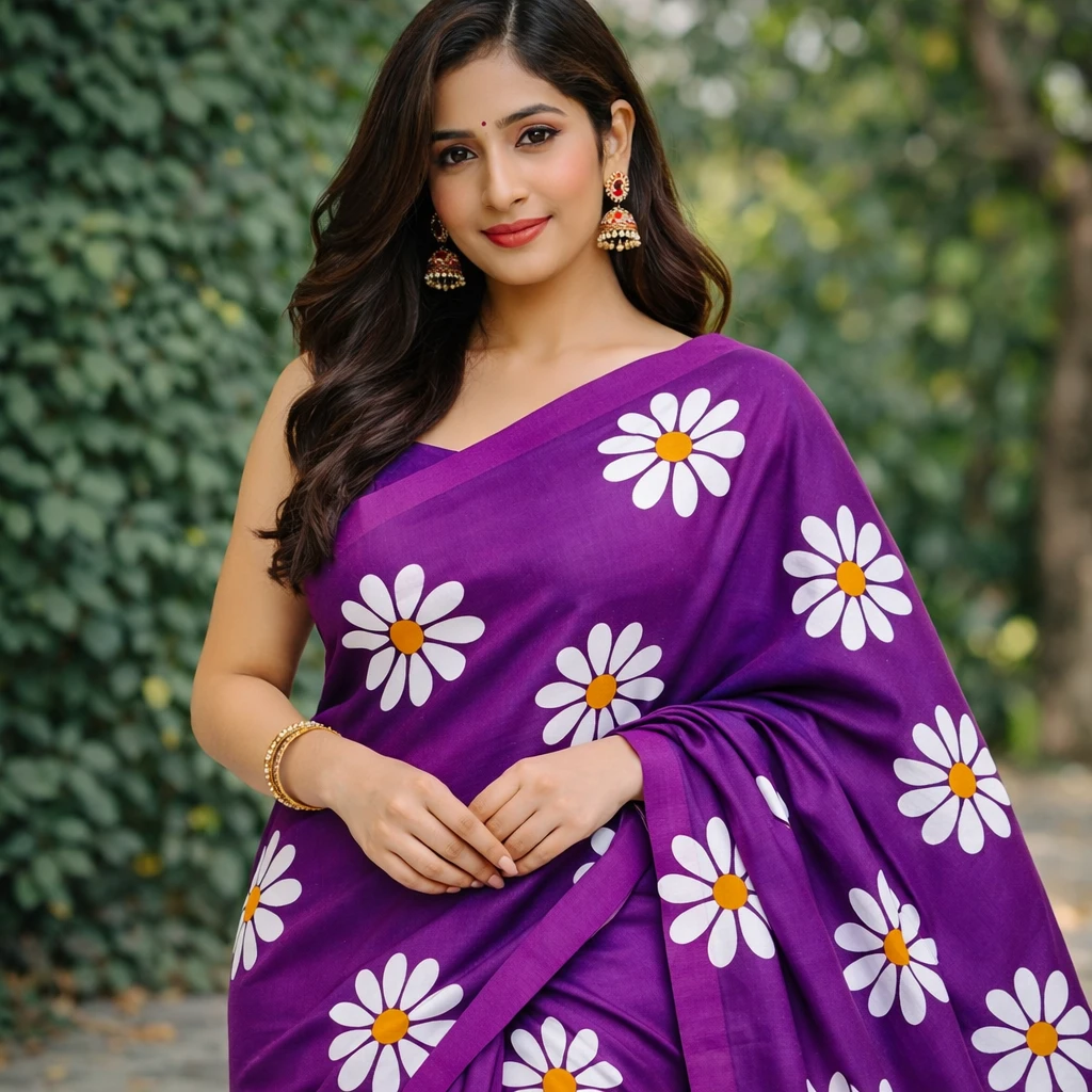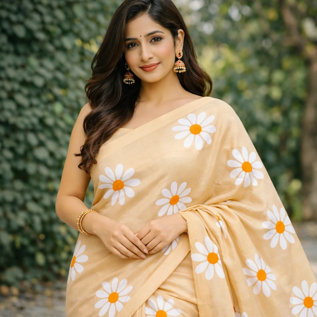 Elegant Traditional Look – Combines classic khadi texture with modern floral prints.