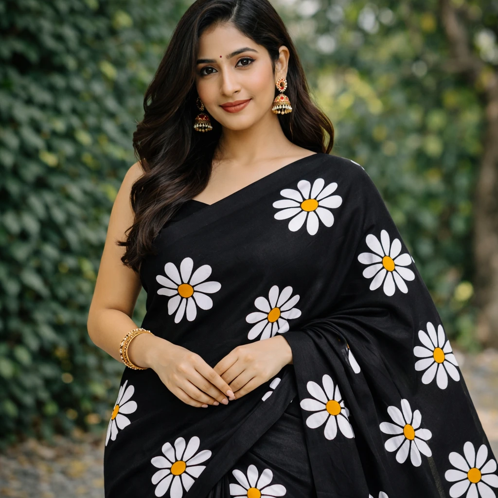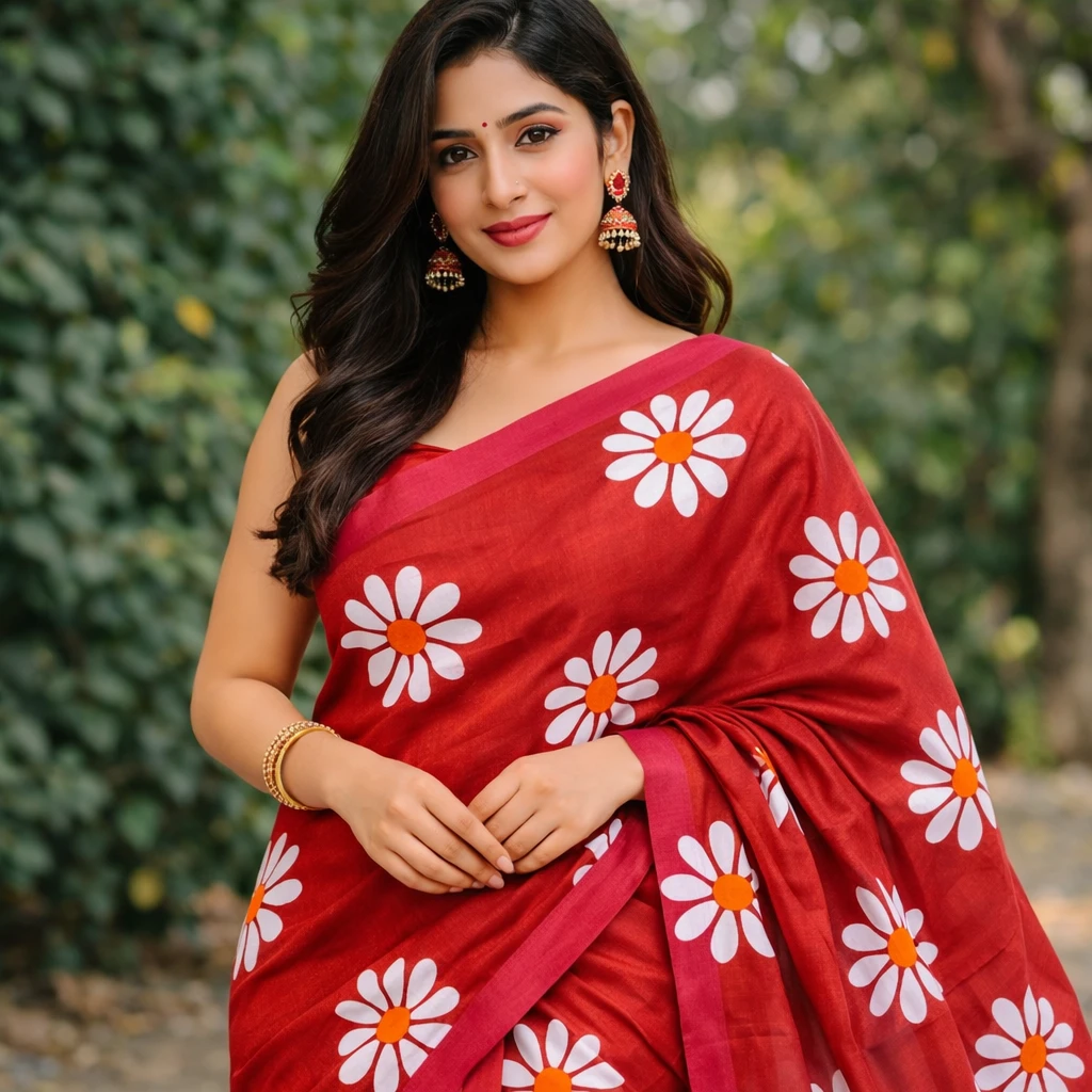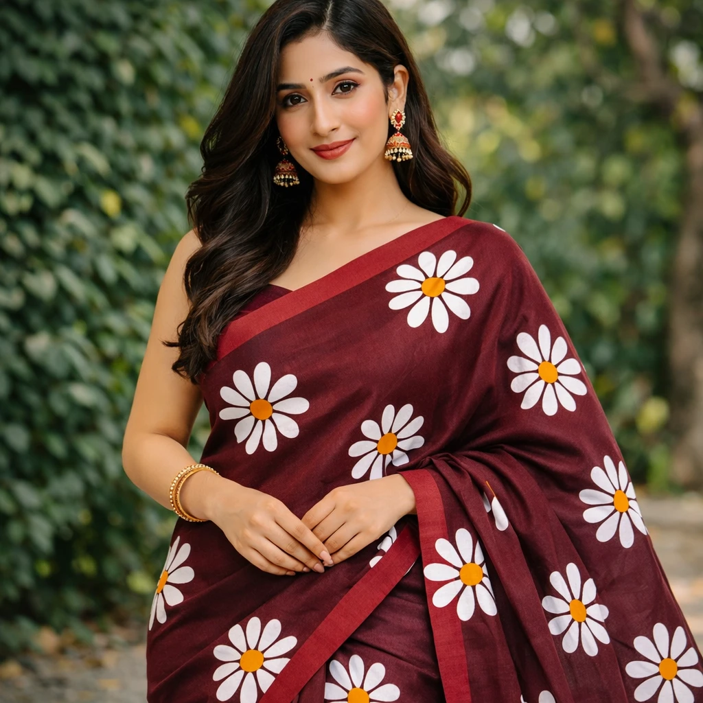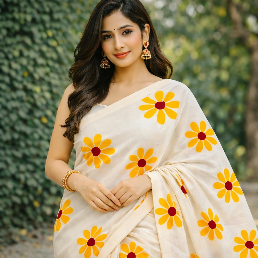 Elegant Traditional Look – Combines classic khadi texture with modern floral prints.