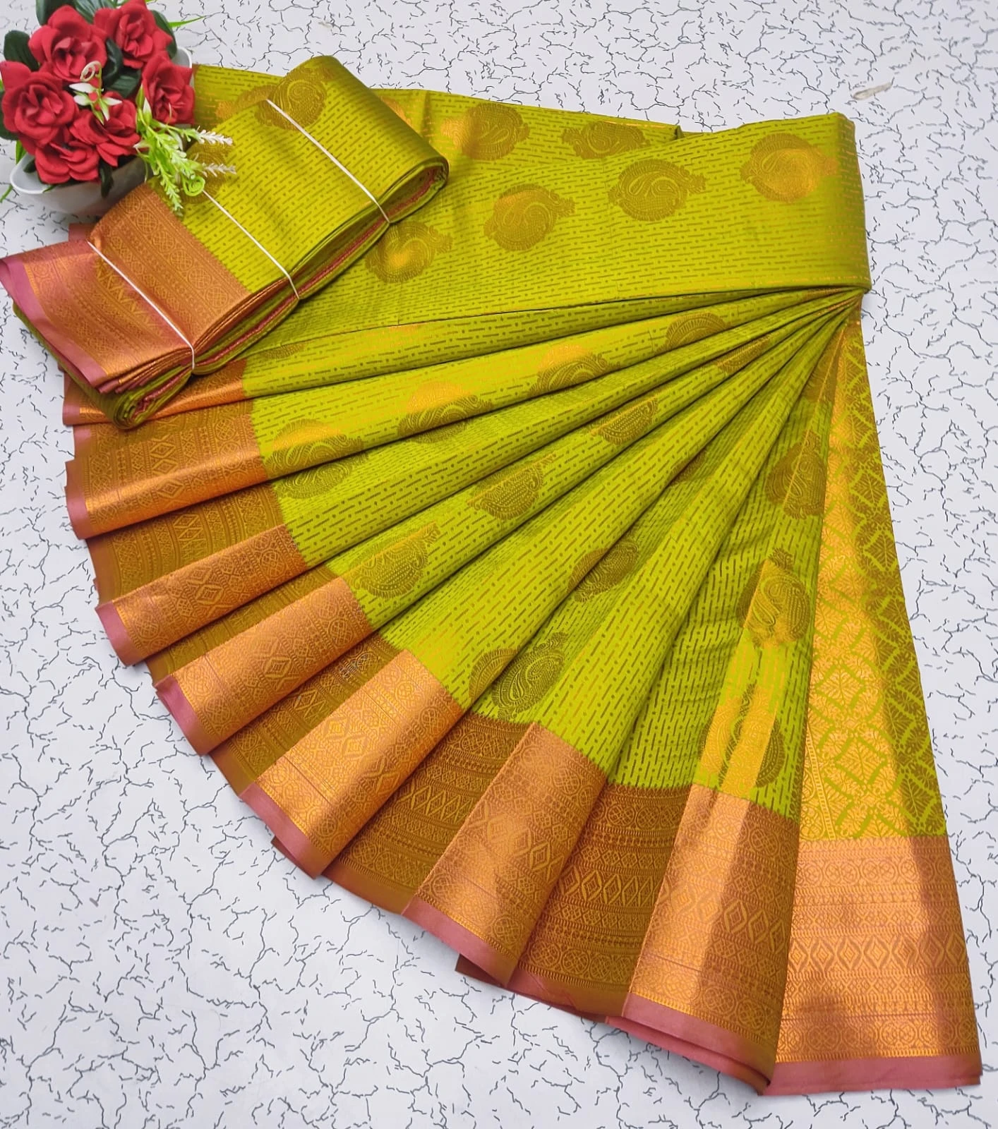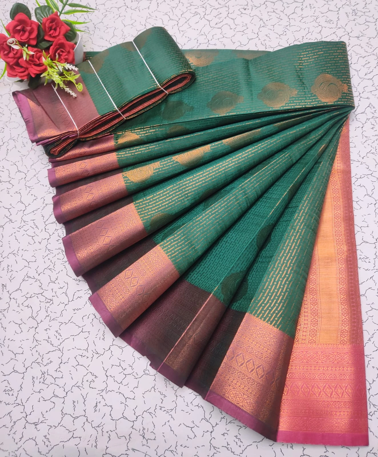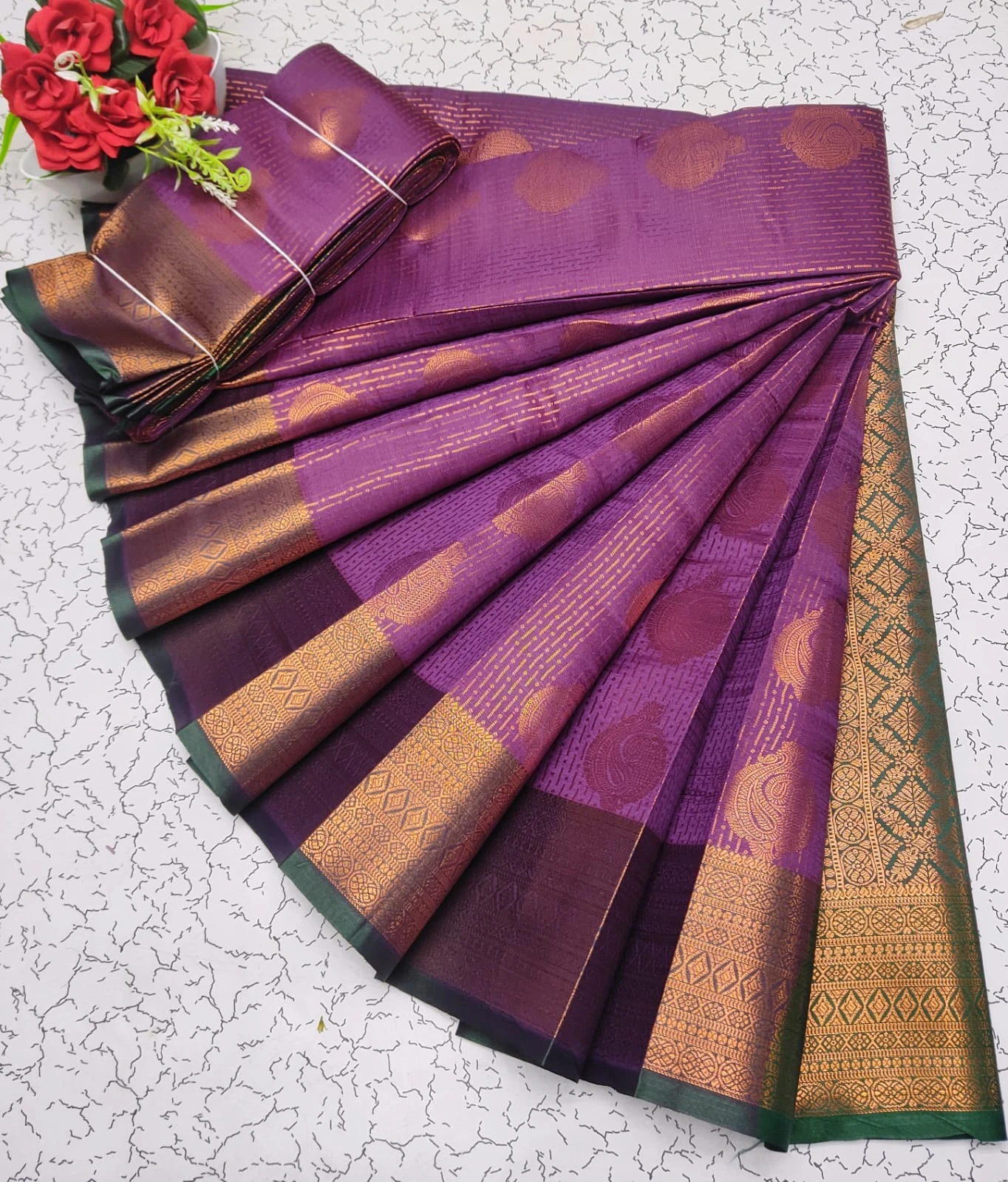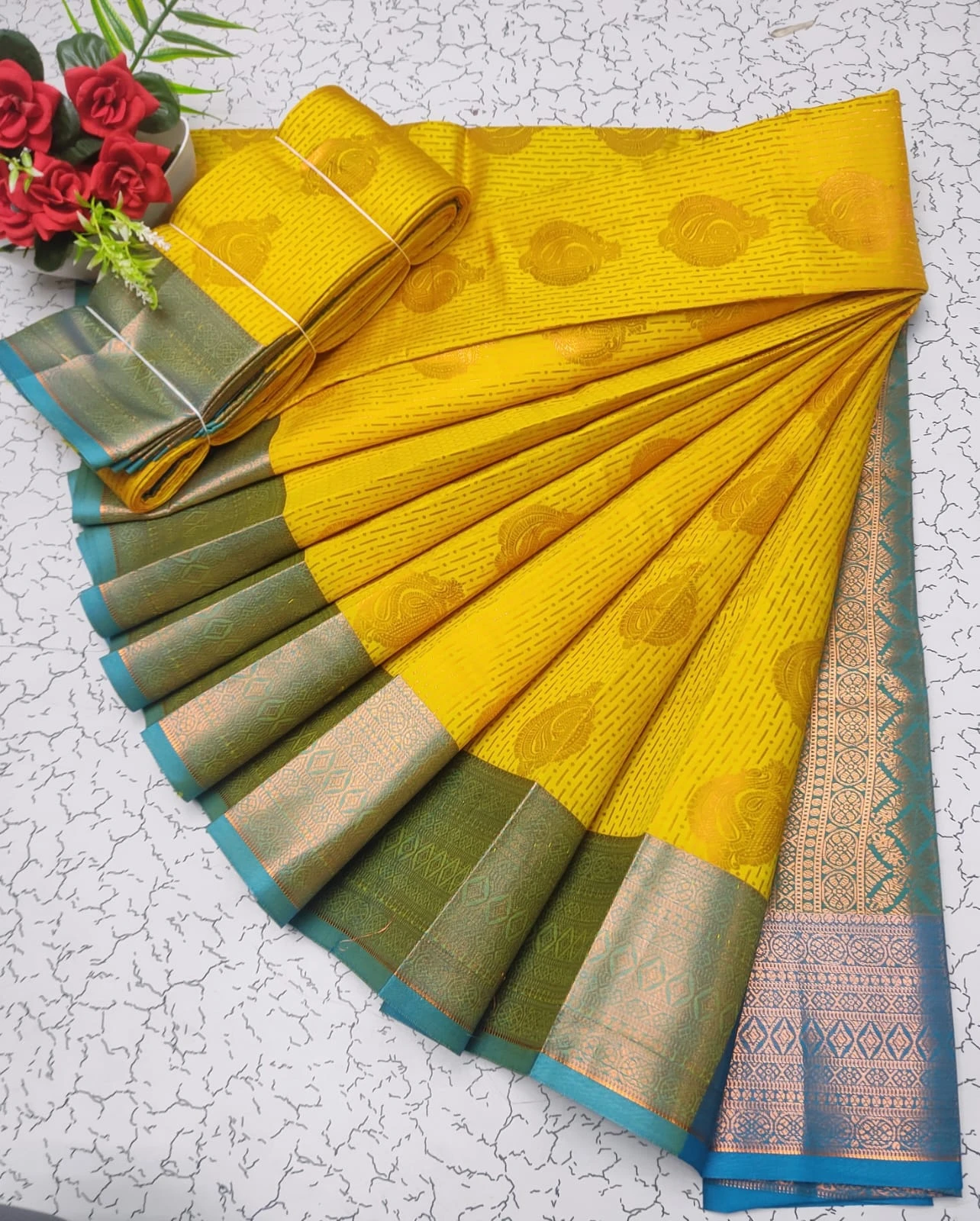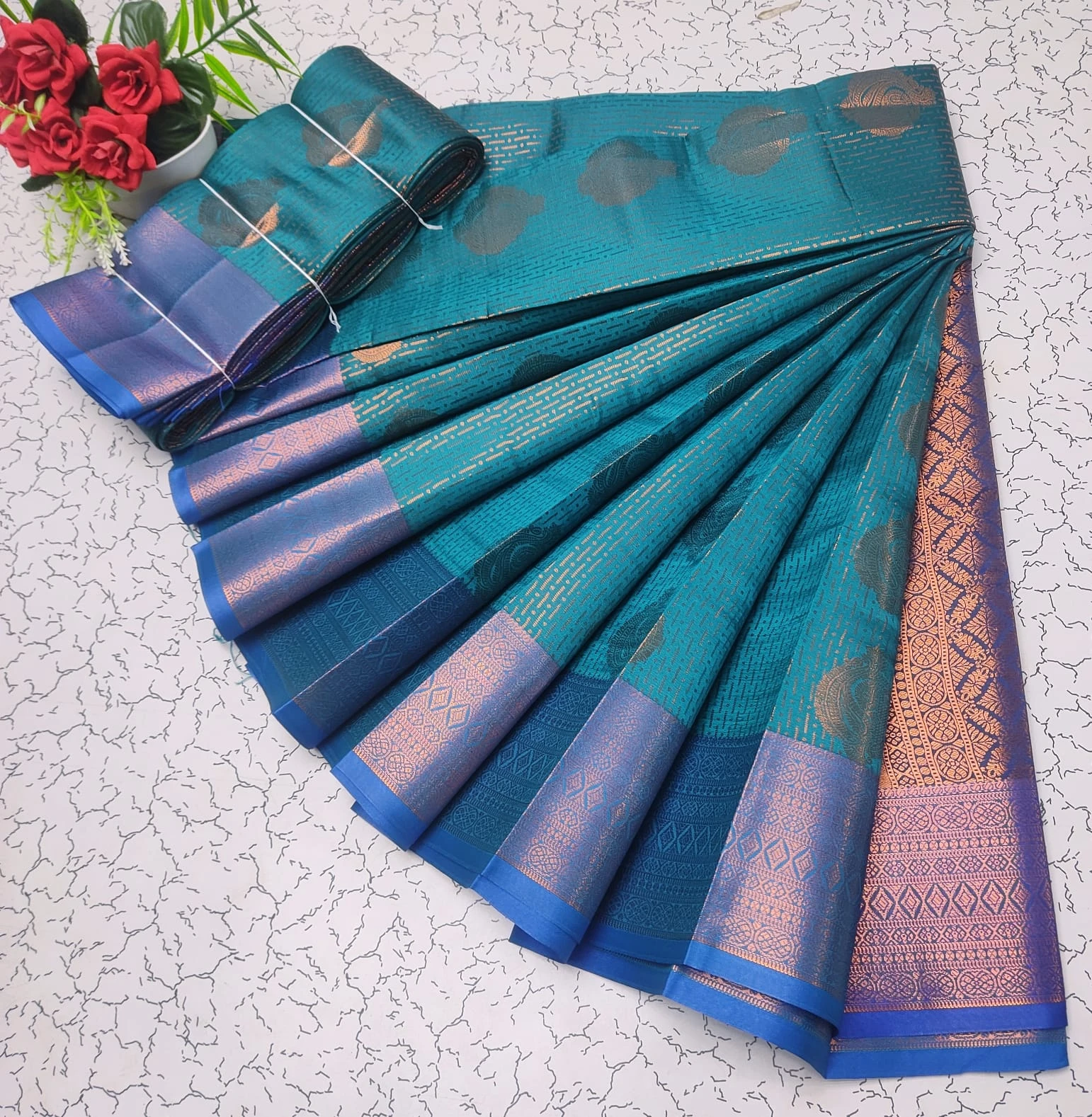 Comes with a matching or contrast blouse piece for a complete traditional look.